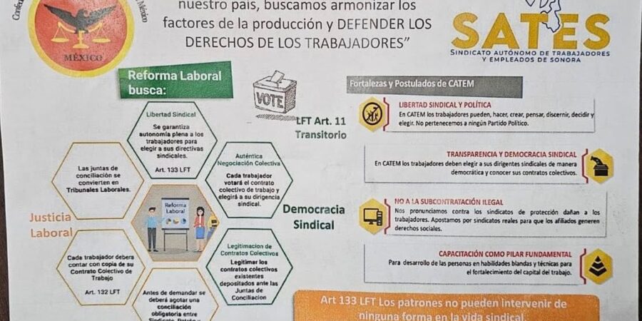 Empresarios de distintos sectores productivos de Sonora denunciaron presuntas prácticas sistemáticas de extorsión, chantaje y simulación sindical en CATEM – Sonora, que estarían siendo ejecutadas bajo un modus operandi ya documentado en otras entidades del país, y que hoy coloca al estado en el centro de una alerta nacional por el uso fraudulento del nuevo modelo laboral, que afecta de manera directa la operación de empresas formales, la estabilidad laboral de cientos de trabajadores y el clima de inversión en la entidad. Las denuncias señalan a liderazgos sindicales vinculados a la Confederación Autónoma de Trabajadores y Empleados de México (CATEM)Más información…